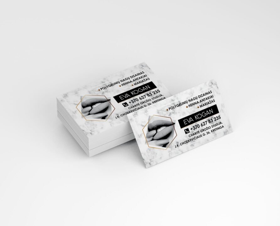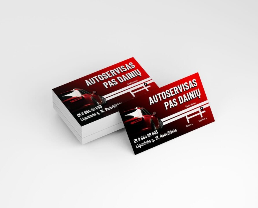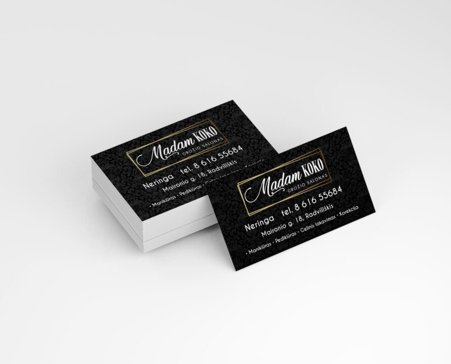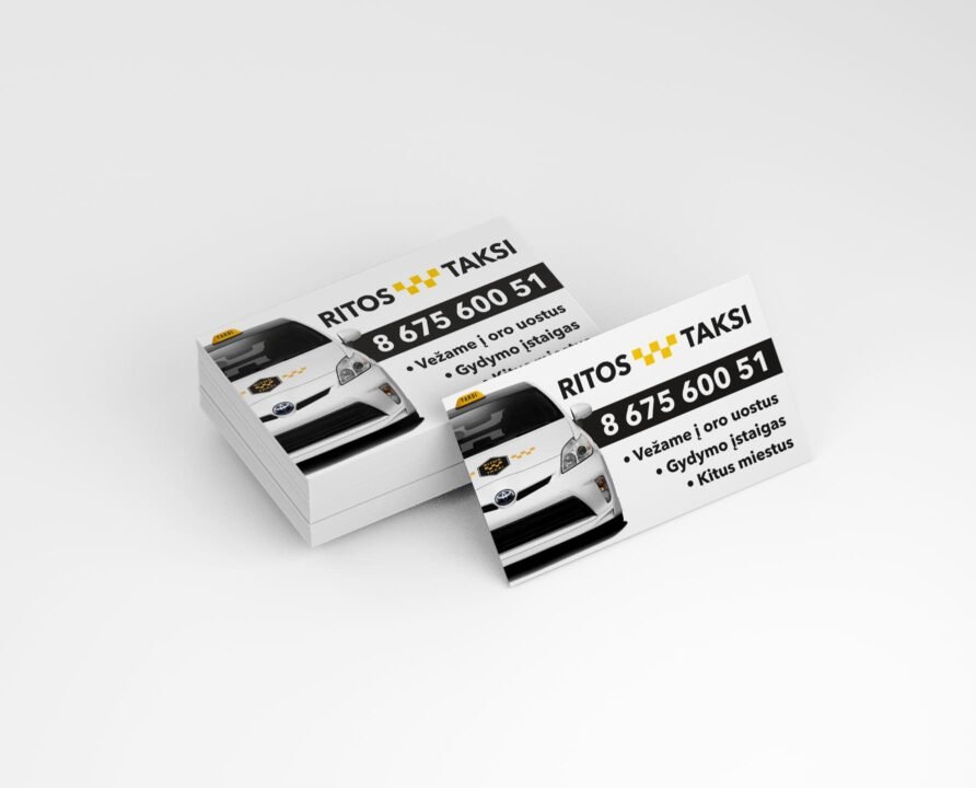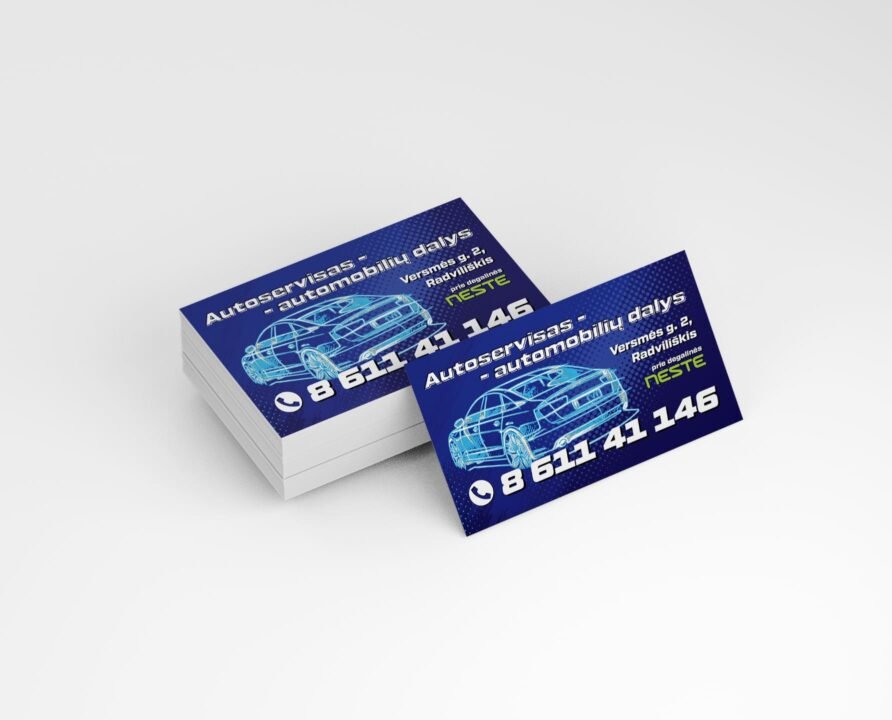 Vizitinės kortelės spausdinamos skaitmenine spauda ant 350 gms popieriaus. Minimalus kiekis 200 vnt. Galima vienpusė arba dvipusė spauda. Vizitinės kortelės standartas 90×50 mm arba 85×55 mm.