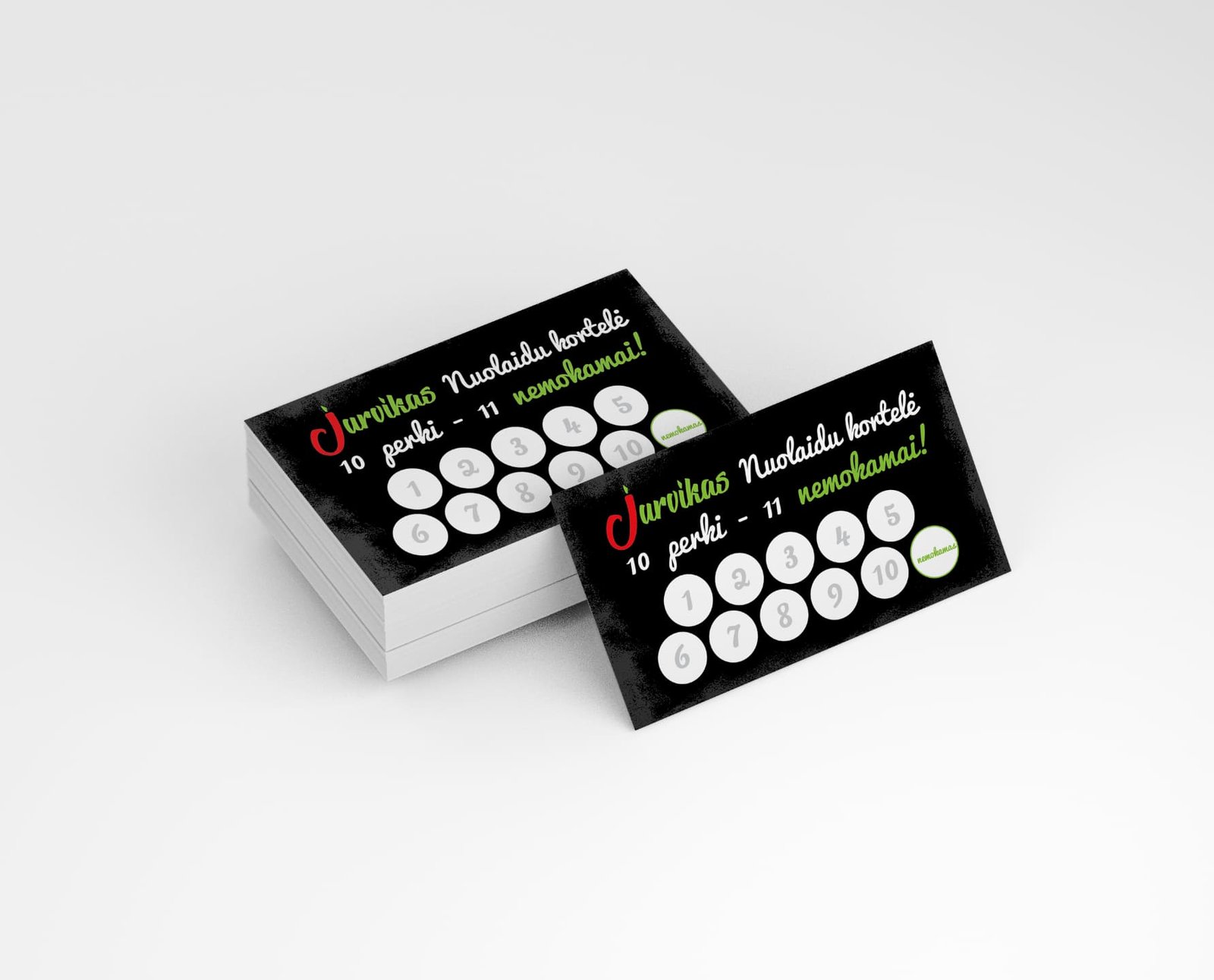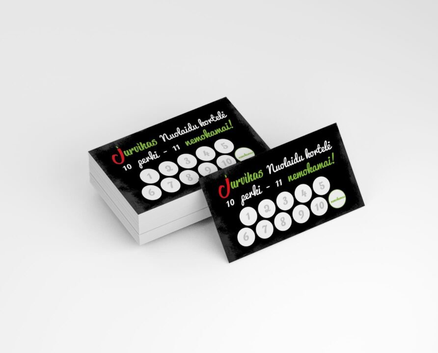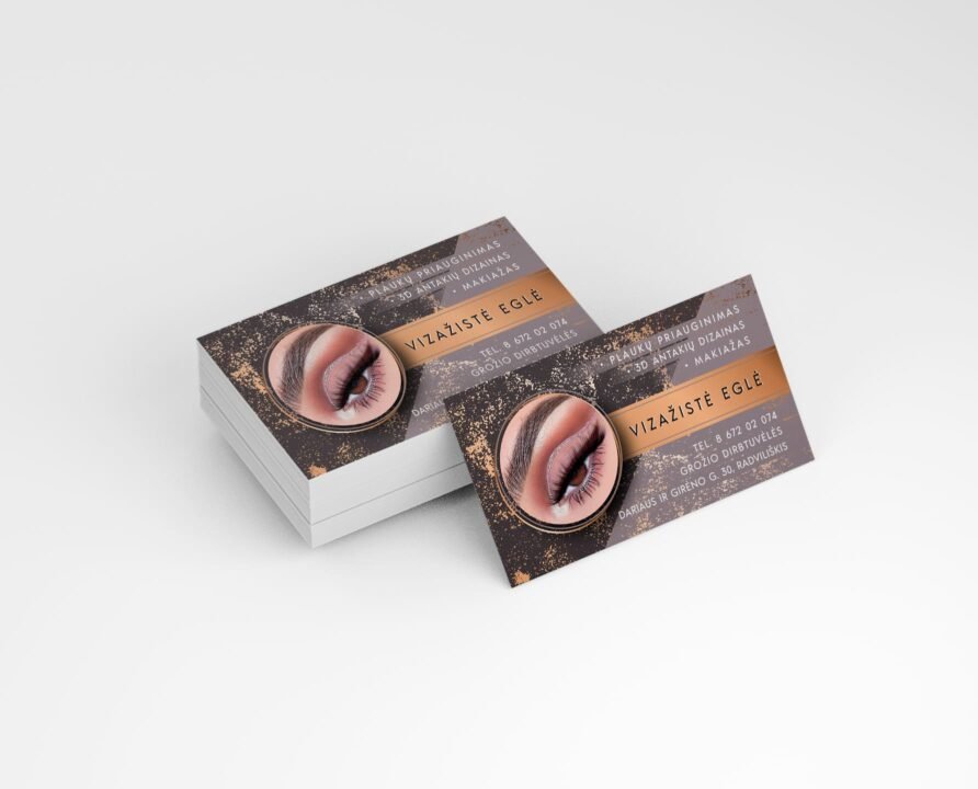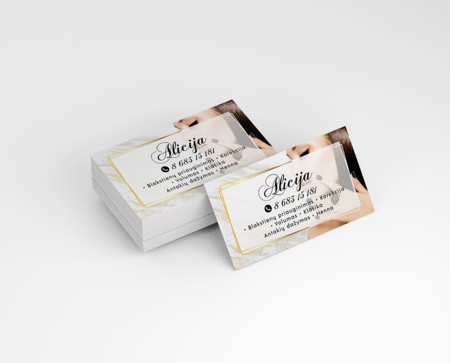 Vizitinės kortelės spausdinamos skaitmenine spauda ant 350 gms popieriaus. Minimalus kiekis 200 vnt. Galima vienpusė arba dvipusė spauda. Vizitinės kortelės standartas 90×50 mm arba 85×55 mm.